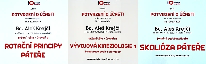 Vzdělání v IQ pohyb akademii mi zajistilo důkladné praktické i teoretické znalosti potřebné pro práci trenéra a instruktora. Dokážu pracovat s různými skupinami klientů, s množstvím cvičebních pomůcek a pomáhat řešit různé zdravotní problémy.